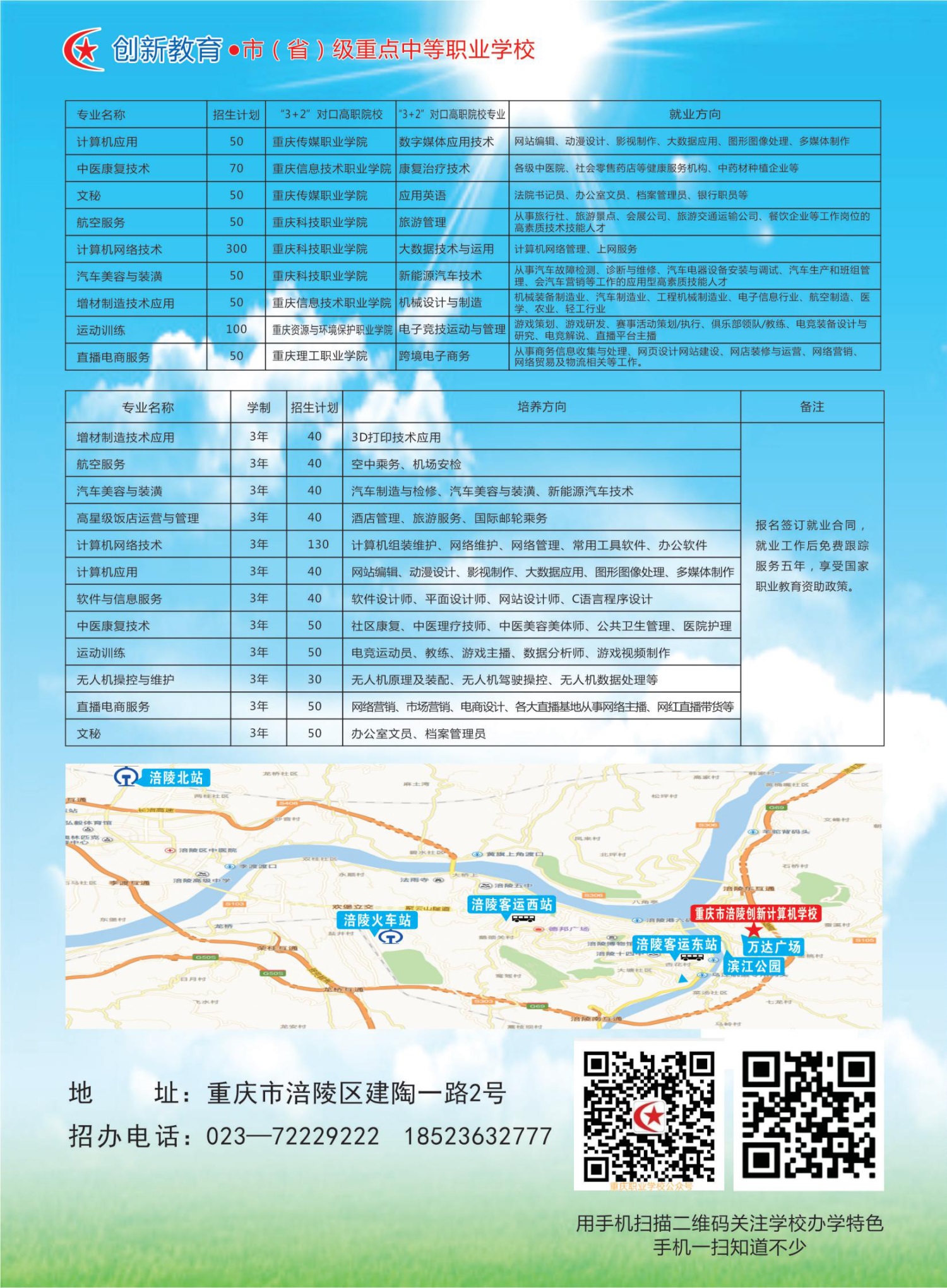2023年重庆市涪陵创新计算机学校招生简章