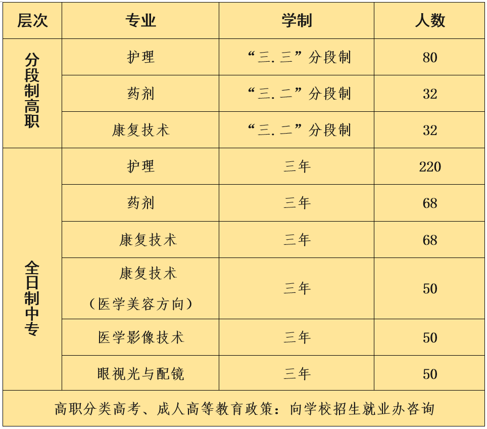 3.身体健康,无色盲、色弱等影响专业学习的情况;护理专业男生身高≥165cm、女生身高≥155cm。