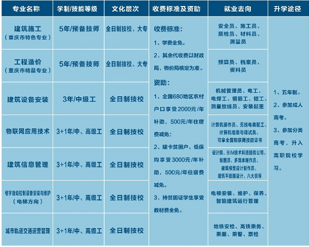以上就是小编整理的重庆建筑高级技工学校招生计划,同学们可以对应一下上面的专业,选择自己喜欢的专业进行报考。