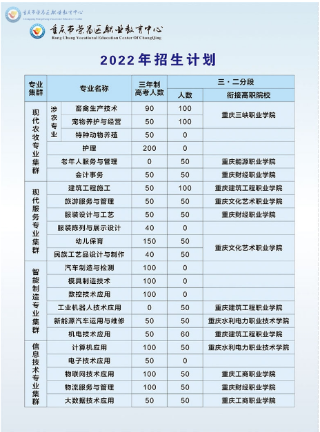 今天所做的事情是为了我们有更好的明天,未来属于那些在昨天做出今天计划的人。学校也是的,那些优秀的学生也是属于一些早早做出招生计划的学校的。所以我们要去看那些学校的招生计划,然后进行对比。现在看看荣昌区职业教育中心2022年招生计划。